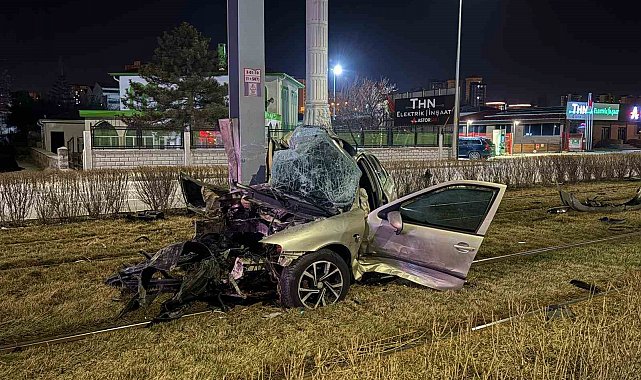 Kayseri'nin Melikgazi ilçesinde kontrolden çıkan otomobil, başka bir otomobile çarptıktan sonra tramvay yoluna girdi. Tramvay yolundaki direğe çarpan otomobil kağıt gibi bükülürken, sürücü yaralandı.