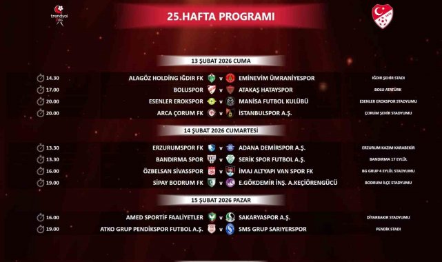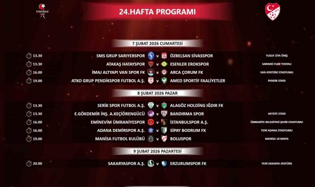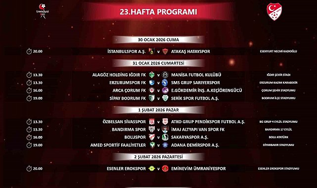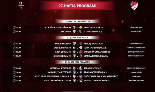 Trendyol 1. Lig'de 23-27. hafta programı şöyle: