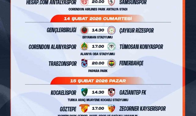 Türkiye Futbol Federasyonu (TFF), Trendyol Süper Lig'de 20-22. haftalar arasında oynanacak mücadelelerin programını duyurdu. Ligi 22. haftasında Trabzonspor'un, Beşiktaş'ı konuk edeceği karşılaşma 14 Şubat Cumartesi günü saat 20.00'de yapılacak.