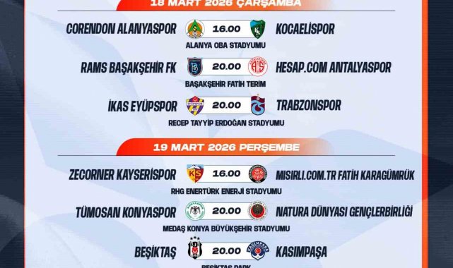 Türkiye Futbol Federasyonu (TFF), Süper Lig'de 26-27. hafta maçlarına ilişkin programı duyurdu. Galatasaray ve Samsunspor'un UEFA Şampiyonlar Ligi ve UEFA Konferans Ligi'nde son 16 turuna yükselmiş olmalarından dolayı, Göztepe - Galatasaray ile Çaykur Rizespor - Samsunspor mücadeleleri ileri bir tarihe ertelendi. Karşılaşmaların oynanacağı tarihler daha sonra ilan edilecektir.