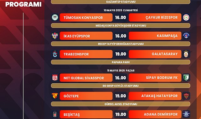 Süper Lig'in 35. haftanın programı şu şekilde:
