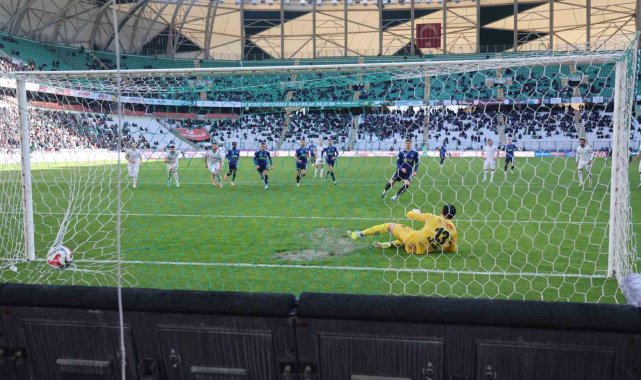 45+8. dakikada penaltı noktasında topun başına geçen Gueye'nin şutunu kaleci Bahadır kurtardı.