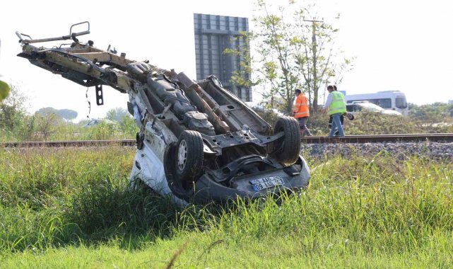 Aydın'ın Efeler ilçesi yakınlarında meydana gelen kazada yolcu treninin çarptığı kamyonet paramparça oldu. Görenleri şaşkına çeviren kazada yaklaşık 50 metre sürüklendikten sonra incir bahçesine savrulan kamyonetin sürücüsü yaralı olarak kurtuldu.