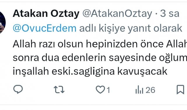 Maç günü haberi, oğlunun burnunun kırıldığı için hastaneye götürüldüğü şeklinde alan ve durumunu hastanede öğrenen baba Atakan Öztay, ilk andan itibaren kendilerini hiç yalnız bırakmayan herkese teşekkür etti, dualarını eksik etmemelerini istedi.