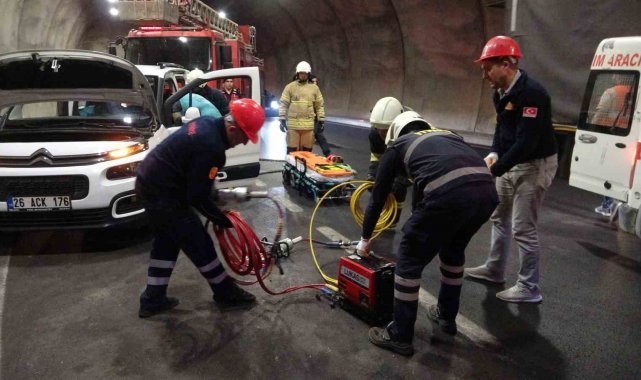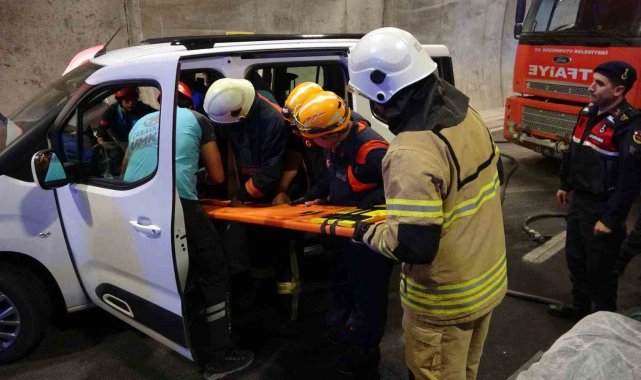 Çanakkale Troya Tüneli içerisinde AFAD koordinasyonunda düzenlenen trafik kazası tatbikatı gerçekleştirildi.