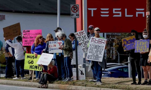ABD'de kamu kurumlarının işten çıkarmalar yapmak ve işe alımları sınırlamak üzere kurulan Hükümet Verimliliği Departmanı'nın (DOGE) başındaki Elon Musk, federal personel sayısında yapılan kesintilerdeki rolü nedeniyle kurucusu ve CEO'su olduğu Tesla bayilerinin önünde protesto edilmişti. Geçtiğimiz hafta Oregon eyaletine bağlı Portland şehrindeki Tesla elektrikli araç bayisinin önünde yaklaşık 350 gösterici protesto düzenlemişti. New York şehrindeki bir Tesla mağazasının önünde de protesto gerçekleştirilirken, 9 kişi gözaltına alınmıştı.