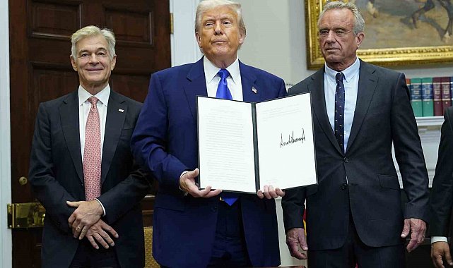 ABD Başkanı Donald Trump, Beyaz Saray'da ABD'deki ilaç fiyatlarını düşürmeye yönelik bir başkanlık kararnamesi imzalayarak, ABD Sağlık Bakanı Robert F. Kennedy Jr. ve Türk kalp damar cerrahı Dr. Mehmet Öz'ün de katıldığı bir basın toplantısı düzenledi.