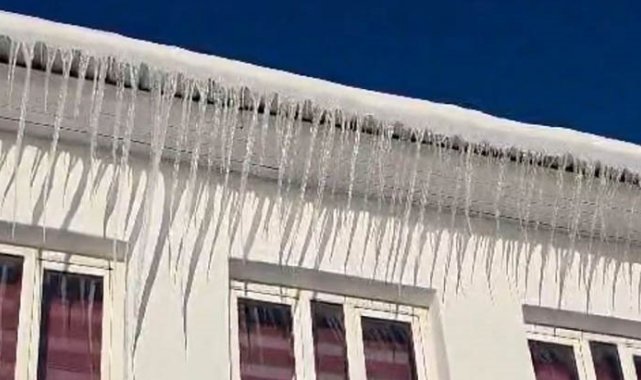 Adana'nın Tufanbeyli ilçesinde, hava sıcaklığı eksi 16 dereceye kadar düşünce çatılarda buz sarkıtları oluştu.