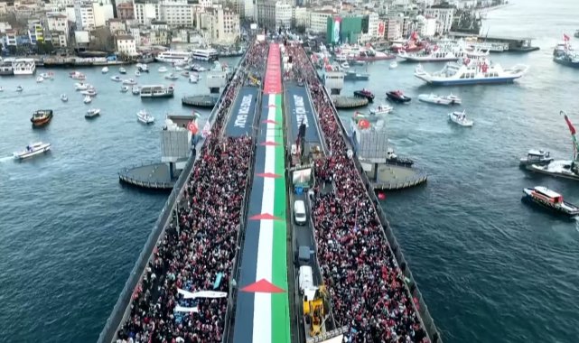 İstanbul'da "Sinmiyoruz, susmuyoruz Filistin'i unutmuyoruz" sloganıyla yeni yılın ilk sabahında Galata Köprüsü'nde düzenlenen mitinge binlerce vatandaş akın etti. Tarihi mitingte konuşan TÜGVA Genel Başkanı İbrahim Beşinci, "Bugün, burada yüz binler var. Bu soykırıma karşı dimdik duran onurlu bir millet var. Mazlumların duası, şehitlerimizin mirası var. Bugün, burada; Çifte standartlı açıklamalara, geciktirilmiş kınamalara, kayıtsızlığa, vicdansızlığa karşı güçlü bir duruş var. Bugün, burada; Suskunluğun duvarı yıkılıyor. Alışkanlığın zinciri kırılıyor. Tarihe vicdan kaydı düşülüyor. Ey Batı'nın Kukla Liderleri; 7 Ekim'den bugüne, tam 27 aydır Gazze topraklarına; 210.000 bin ton bomba atıldı.70.000 sivil hayatını kaybetti. 2.600 ailenin tamamı nüfustan silindi. 5.000 aileden geriye sadece 1 kişi kaldı. 45.000 Filistinli ampute oldu. 12.000 Filistinli tutuklandı. Yani tüm dünyanın gözleri önünde bir halk haritadan değil hayattan silindi. Ey Birleşmiş Milletler; 2.Dünya sonrasında küresel barışın teminatı olarak kurulmamış mıydınız? Küresel adaleti tesis etmeyecek miydiniz? Dil-din-ırk-herkes eşit değil miydi? Yaşamak, hürriyet ve kişi emniyeti her ferdin hakkı olmayacak mıydı? Bütün insanlar hür, haysiyet ve haklar bakımından eşit doğmamış mıydı? Buradan tüm dünyaya sesleniyorum; İnsan hakları beyannamesi ile ortaya atılan maddelerin tamamı Gazze topraklarında ihlal edilmedi mi? Duymadınız mı? Görmediniz mi? Buradan Gazze'deki kardeşlerimize, orada mücadele eden mücahitlerimize ölüm topraklarında yaşayan kardeşlerimize sesleniyoruz. Sen üzülme! Alışmadık, yılmadık, usanmadık. Biz sizden hiç kopmadık. Sinmedik-susmadık. Biz sizden hiç uzaklaşmadık. Duman rengine mahkûm edilmiş bu dünyaya; Medeniyeti- İnsaniyeti- Hürriyeti- Hakkaniyeti biz getireceğiz. Bunu biz yapacağız. Biz başaracağız. Toprağa girene kadar durmayacağız. Zalimlerden olmayacağız. Sizleri asla unutmayacağız. Ve hiç şüpheniz olmasın ki; Bir gün gelecek, bir gün kalacak bu millet yürüyecek bir sabah kardan aydınlık gelecek" dedi.