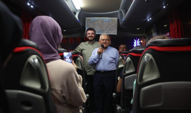 Gençlerle yakından ilgilenen Başkan Büyükkılıç, İstanbul'a doğru yola çıkan otobüsleri el sallayarak uğurladı.