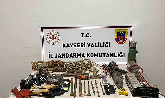 Kayseri'nin Felahiye ilçesinde tümülüste kaçak kazı yapan 4 kişi jandarma ekiplerince suçüstü yakalandı.