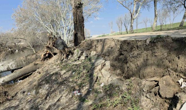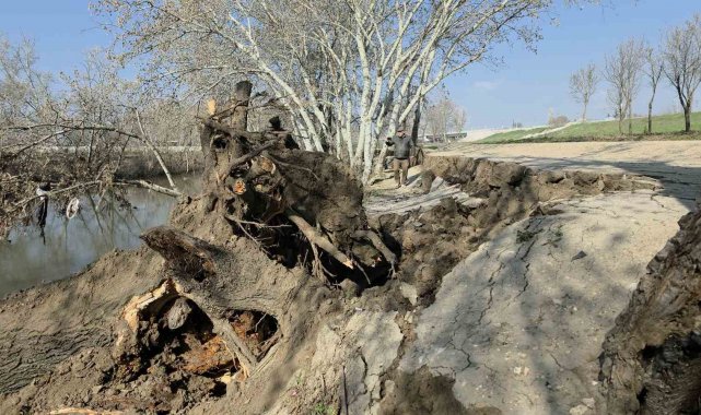 Tunca Nehri kıyısında toprak kayması: 9 yıl sonra gelen taşkınlar zemini etkiledi