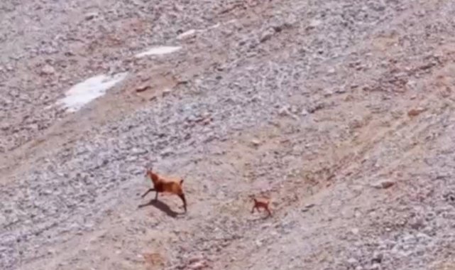 Doğaya duyduğu büyük sevgi ve keşif tutkusu nedeniyle polislik mesleğinden istifa eden 32 yaşındaki Melih Bektaş, iki yıldır dünyayı gezerek doğa temalı içerikler üretiyor. İlk kez geldiği Tunceli'nin Ovacık ilçesindeki Mercan Vadisi'nde arkadaşlarıyla keşif yapan Bektaş, yamaçta fark ettikleri hareketlilik üzerine dronunu yönlendirdi. Çekimlerde bir ayının dağ keçisi ve yavrusunu kovaladığı, kısa süre sonra da ayının yavruyu ağzında taşıdığı görüldü. Görüntülerde, anne dağ keçisinin çevreyi dikkatle izlediği anlar da yer aldı.