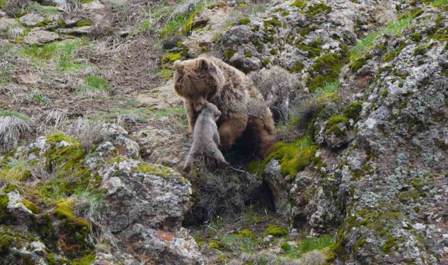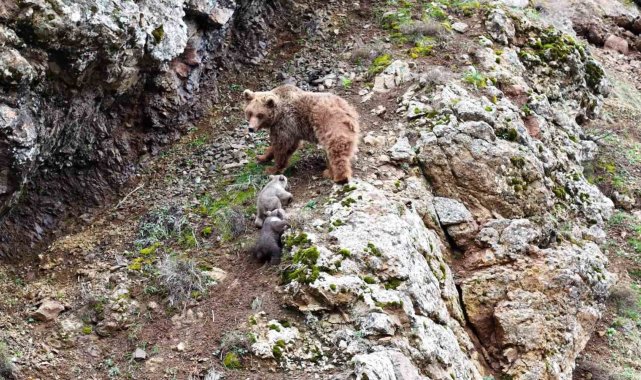 Tunceli'de kaydedilen görüntüler, yaban hayatının en özel anlarından birini gözler önüne serdi. Dağlık alanda görüntülenen bir ayılar ve yavruları, izleyenlere adeta belgesel sahnelerini aratmayan anlar yaşattı. Görüntülerde bir anne ayının yavrularını emzirdiği anlar net bir şekilde kaydedildi. Bir süre sonra hareketlenen yavruların kayalık alana doğru ilerlediği, annenin ise onları dikkatle yönlendirdiği görüldü. Zorlu arazi şartlarında ilerlemekte zorlanan yavrularına yardım eden anne ayı, zaman zaman geri dönerek onların güvenli şekilde tırmanmasını sağladı.