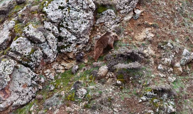 Tunceli'de dron ile görüntülenen ayılar ve yavruları adeta belgeselleri aratmadı. Bir aynının yavrularını emzirmesi ve kayalılardan çıkmasına yardımcı olması net şekilde kamera yansıdı.