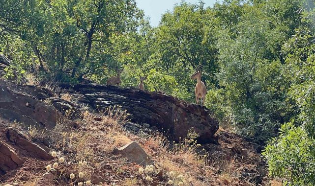 Tunceli'nin Ovacık ilçe yolundaki ormanlık alanda, nesli tükenme tehlikesi altındaki dağ keçileri görüntülendi.