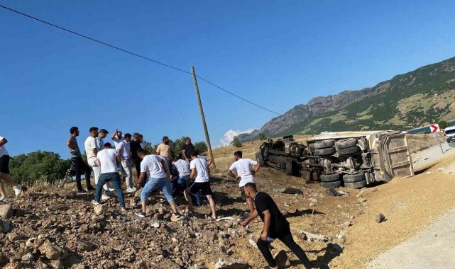 Tunceli'de kamyon devrildi, sürücü araçtan fırladı