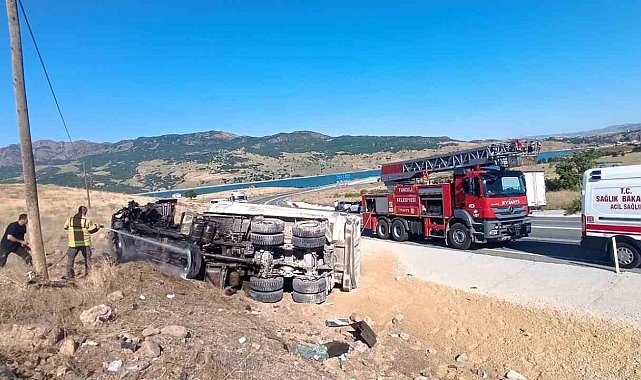 Tunceli'de freni patlayan kamyon devrildi. Sürücüsünün araçtan fırladığı araç hurdaya döndü.