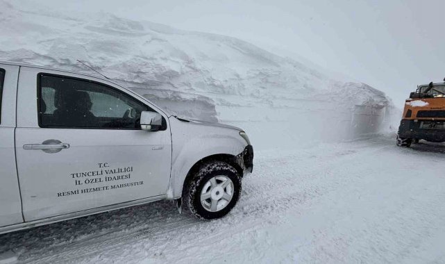 Tunceli'de Mercan Grup Köy Yolu'nda kar kalınlığının yer yer 3,5 metreye ulaştığı bölgelerde ekipler, ağır kış şartlarına rağmen ulaşımı sağlamak için çalışmalarını aralıksız sürdürüyor.