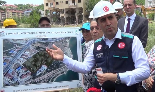 Tunceli merkez Atatürk Mahallesi'nde rezerv alanı ilan edilen bölgede 170 konutun kentsel dönüşüm çalışmalarını yerinde inceleyen Vali Şefik Aygöl'e Çevre Şehircilik ve İklim Değişikliği İl Müdürü Melih Melik Kara tarafından bilgi verildi. Hak sahiplerinin de katıldığı programda açıklama yapan Tunceli Valisi Şefik Aygöl, "Biz son dönemlerde Elazığ ve 6 Şubat depremini yaşadık. Bu depremlerden şehrimiz de zarar gördü. Bu kapsamda şu ana kadar 617 tane afette zarar görmüş hanemiz yıkılıp yerine yenisi yapıldı. Şu anda da bin 422 devam eden yapımız var" dedi.
