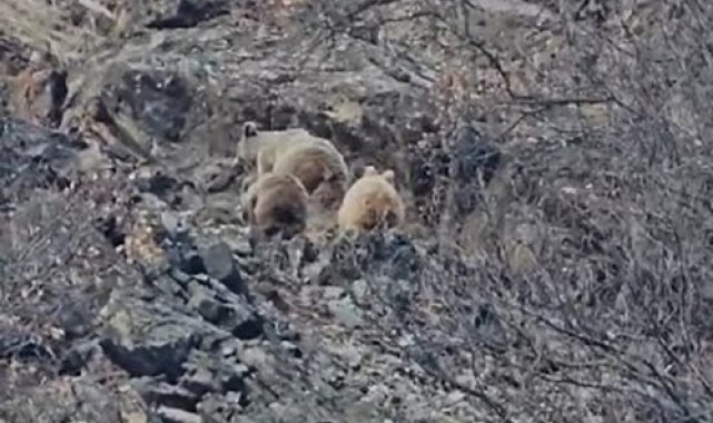 Tunceli'de, kış uykusuna yatmayan anne ve 2 yavru bozayı görüntülendi.