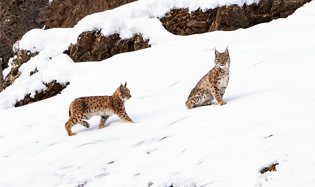 Tunceli'de koruma altında bulunan vaşak ailesi görüldü
