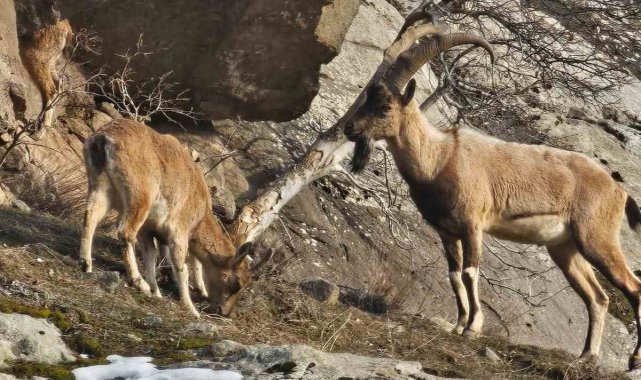 Öte yandan, Tunceli'nin Ovacık ve Munzur vadilerinde de karayolu kenarına kadar inen yaban keçileri bir süre beslendikten sonra yeniden ormanlık alana doğru gitti. Keçilerin o anları kayıt altına alınırken yetkililer, yaban hayatına zarar verilmemesi için vatandaşlara uyarılarda bulundu.