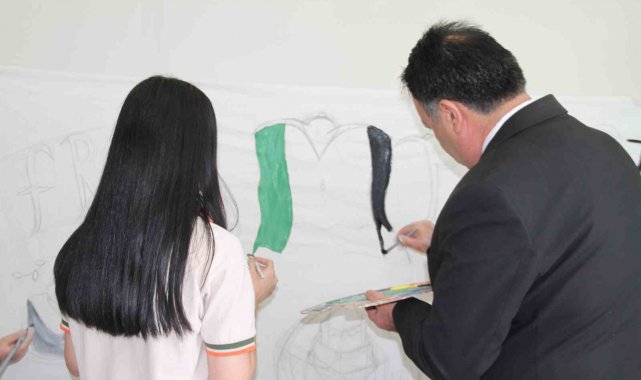 Etkinlikler kapsamında öğrencilerle bir arada olan İl Milli Eğitim Müdürü Bahameddin Karaköse, "Bugün ülke genelinde, 81 ilimizde, tüm okullarda öğrencilerimiz ve öğretmenlerimiz tek yürek şeklinde Filistin meselesinde bir farkındalık oluşturmak için bir duruş ortaya koyuyorlar. Bugün tüm dünya ülkelerinde İsrail'e tepki her gün çığ gibi büyüyor. İsrail'in Filistin halkına Gazze'de yaptıkları kabul edilemez. Sivillerin, çocukların, savunmasız insanların katledilmesi, birçok evrensel değerin yok edilmesi, dünya barışının tehlikeye girmesi kabul edilebilecek şeyler değildir. Biz de çocuklarımızı eğitim yuvalarında, okullarımızda onları hayata hazırlarken nasıl ki akademik becerilerle donatıyoruz; aynı zamanda onları hayata hazırlama sürecinde evrensel değerlerle de buluşturmak farkındalık oluşturmak konusunda çalışmalar yapıyoruz" dedi.