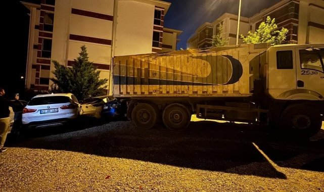 Tunceli'de park halinde freni patlayan kamyon, 5 araca zarar verdi