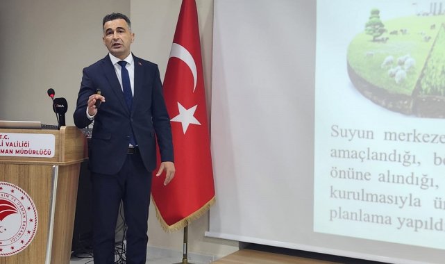 Tunceli'de son yıllarda yapılan destek ödemeleri ve kapsamını yaptığı sunumla anlatan Tunceli İl Tarım ve Orman Müdürü Yavuz Suat Pala, "Tarımsal üretim planlaması, gerek bitkisel üretimde gerek hayvansal üretimde suyu merkeze alarak bakanlığımızın planladığı bir süreçtir. Biz bitkisel üretimde yaklaşık 24 milyonluk tarım arazimizin, dikili tarım arazileri haricinde 15,7 milyonluk araziyi şu an planlamış bulunuyoruz. Hayvansal üretim planlamasında da suyu merkeze alarak yapılan planlama sonucunda arz talep dengesini sağlamayı amaçlayan bir üretim planlamasıdır. Bitkisel üretimdeki üretim planlaması 13+1 ürün. Bunlar içerisinde hububat, bakliyat, yağlı tohumlar, patates, soğan ve yem bitkileri. Biz Tunceli'yi 8 havzaya böldük, merkez ve 7 ilçe olarak. İlk defa pamuğu Pertek'te havza içerisine aldık. Zaten hububatta arpa ve buğday, bakliyatta kuru fasulye ve mercimek havza içerisindeydi. İlk defa Pertek'te pamuk ve Mazgirt, Çemişgezek ve Pertek'te ayçiçeğini havza içerisine dahil ettik. Hayvansal üretim planlamasında biz 'süt havzası' ilan edilen 10 il arasındayız. Suyu merkeze alan bir planlamadır. Sanayiye giden süt Ege ve İç Anadolu Bölgesinde yüzde 24,58 iken, sanayiye giden sütümüz 10 il arasında yani Doğu'da olan 7, Orta Karadeniz'de olan 3 ilden toplam 10 ilde yüzde 2 sanayiye giden süt var. Bakanlığımızın amacı aslında bu yüzde 2 sanayiye giden sütü yüzde 30-35'lere yükseltmek" dedi.