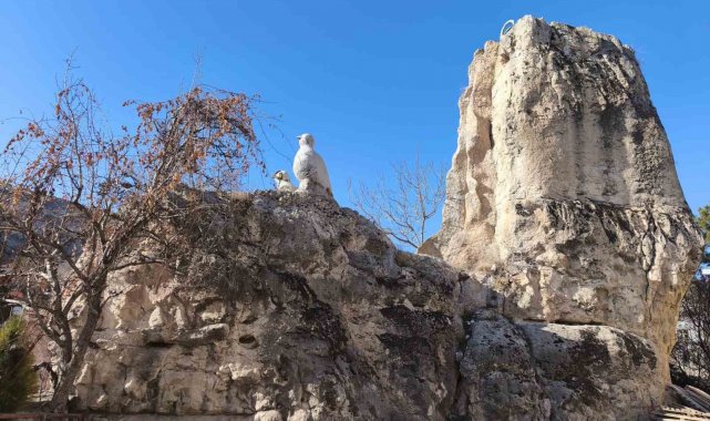 ilçe merkezi girişindeki kaya görenlerin dikkatini çekiyor. Bulunduğu alan ile uyumsuz bir görüntü veren gizemli kayanın doğal yollarla mı, yoksa insan eliyle mi yapıldığına dair net bir bilgi bulunmuyor. Düz bir alanda ve yerleşim yeri içerisindeki kayanın üzerinde, daha sonradan konulan bir yaban keçisi ve kınalı keklik heykeli ile çeşme bulunuyor. Yaklaşık 17 metre yüksekliğinde, 8 metre çapındaki kaya, ilçede 'Uzun Kaya' olarak adlandırılıyor.