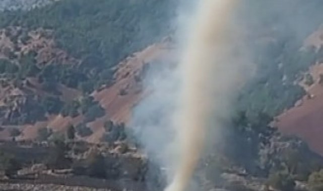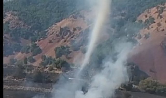 Tunceli'nin Hozat ilçesinde dün çıkan yangında hortum oluşurken o anlar cep telefonu kamerasına yansıdı.
