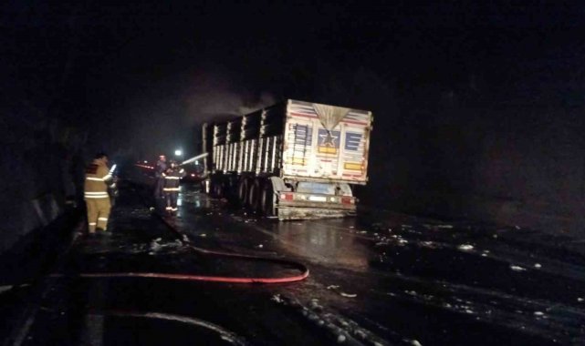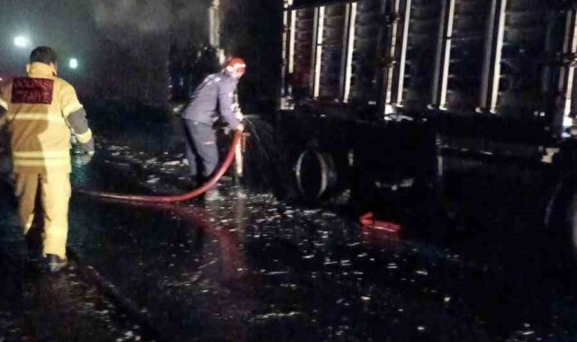 İhbar üzerine bölgeye AFAD, itfaiye, emniyet, jandarma ve sağlık ekipleri sevk edildi. Yoğun duman nedeniyle ekipler yangına müdahalede güçlük yaşarken, alevler kontrol altına alındı. Tır tamamen söndürülürken, soğutma çalışmalarının devam ettiği belirtildi.