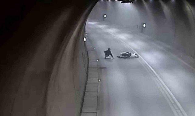 Ferhat Tüneli'nde sürücüsünün kontrolünü yitirdiği motosiklet, yolun sağındaki bordür taşları ile duvara çarpıp takla attı. Motosikletle yola savrulan sürücünün yardımına tünelden geçen diğer araç sürücüleri yetişti. Ayağa kalkan sürücü bir dakika sonra motosikletini yerden kaldırıp yoluna devam etti.