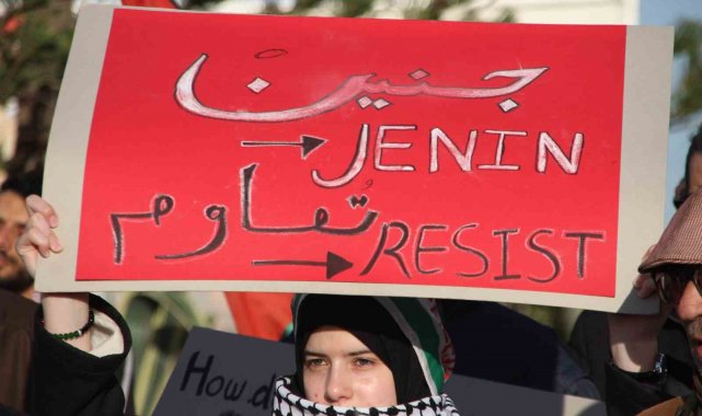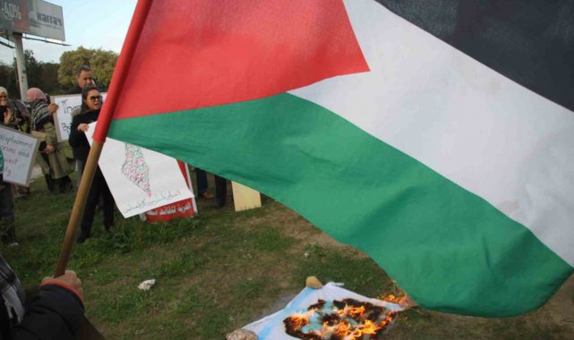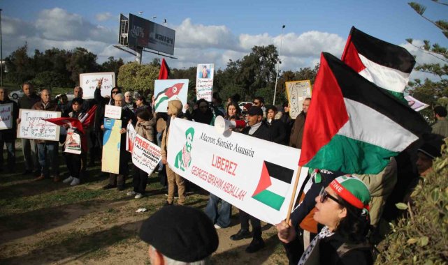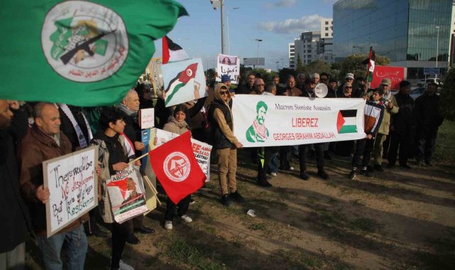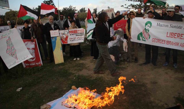Tunus'ta ABD Büyükelçiliği önünde düzenlenen protesto gösterisinde "Filistinlilerin yerlerinden edilmesine hayır", "Donald Trump'ın Filistin halkını Gazze Şeridi'nden sürme planlarını reddediyoruz" sloganları atıldı.