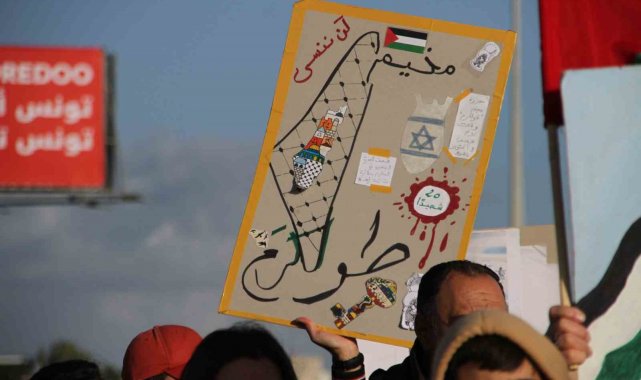 Tunus'ta ABD Başkanı Donald Trump'ın "Gazzelilerin başka ülkelere göç etmesi" yönündeki açıklamalarına tepki gösterildi. Tunuslular ABD Büyükelçiliği önünde düzenlenen protesto gösterisinde "Filistinlilerin yerlerinden edilmesine hayır", "Davanın yıkımına hayır", "Donald Trump'ın Filistin halkını Gazze Şeridi'nden sürme planlarını reddediyoruz", "Gazze umurunda değil, ABD yenilmeli", "Trump, yalancı, ABD terörizmin anasıdır" sloganları attı. Protestocular, ABD Büyükelçiliğinin kapatılması ve ABD Büyükelçisinin Tunus topraklarından sınır dışı edilmesi çağrısında bulunan pankartlar açtı.