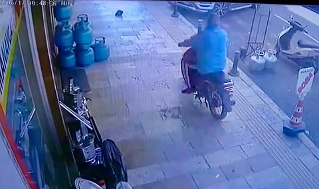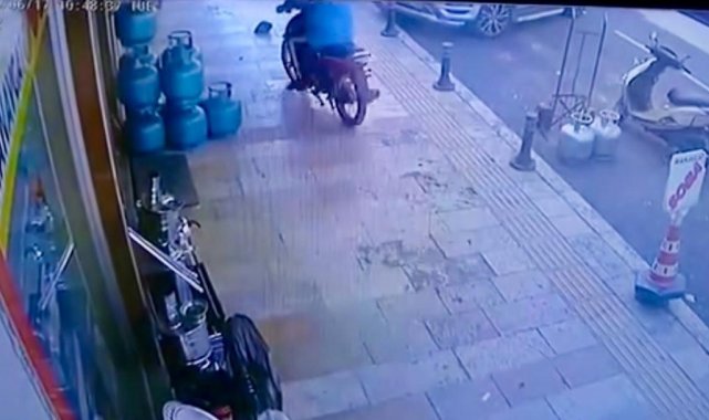 Antalya'nın Manavgat ilçesinde motosikletli 1 kişi, tüpçü dükkanının önünde bulunan tüpü alarak gitti. O anlar güvenlik kamerasına yansırken iş yeri sahibi şikayetçi oldu.