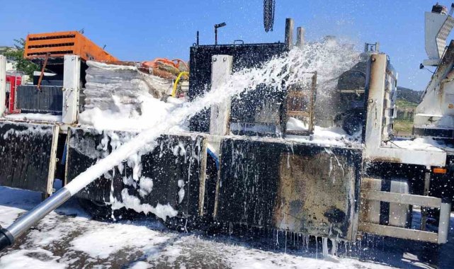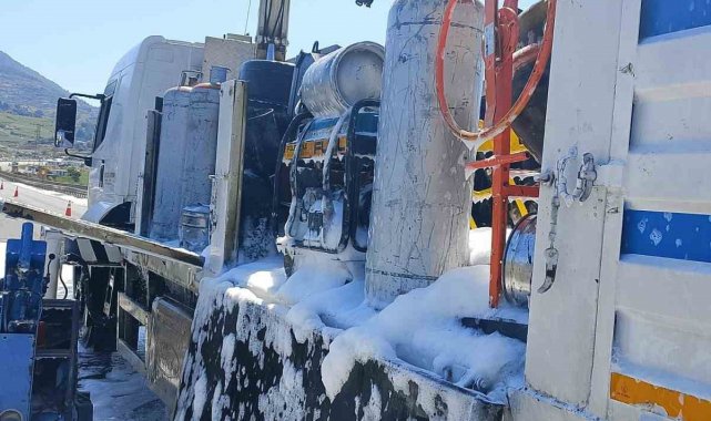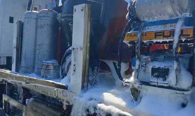 Kahramanmaraş'ta içinde tüplerin de olduğu bir kamyonun kasasında çıkan yangın, itfaiye ekiplerince söndürüldü.