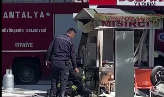 Tüplü seyyar mısır arabası yandı, ilk müdahaleyi vatandaş yaptı