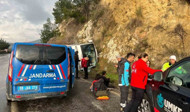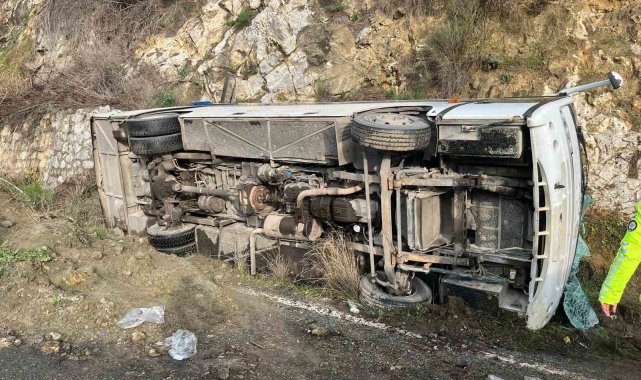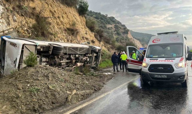 Aydın'ın Germencik ilçesinde İzmir'deki festivale giden tur minibüsü yağış nedeniyle kayganlaşan yolda devrilirken, kazada 23 kişi yaralandı.