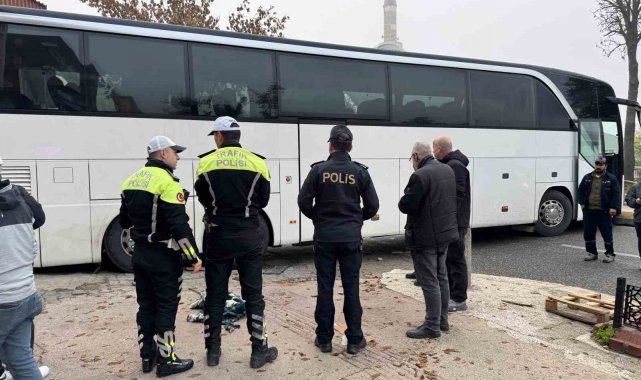 Edirne'de A.A'nın kullandığı 34 NZK 771 plakalı tur otobüsü, sürücünün ters yön kullanarak bayır aşağı inmesi sonucu caddedenin orta refüjene vurarak durabildi. Kazada yaralanan olmazken, trafik adeta durma noktasına geldi.