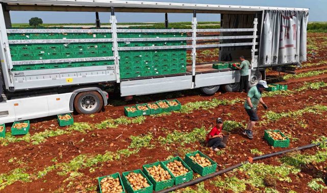 Adana'da 'sarı altın' olarak adlandırılan turfanda patateste hasat başladı. Kent genelinde 61 bin dönüm alanda ekilen patatesin rekoltesi bu sene şiddetli yağmurlar nedeniyle düştü. Geçtiğimiz yıllarda dönüme 4-5 ton rekolte alınan patatesten bu sene çiftçiler dönüme 3 ton ürün alıyor.