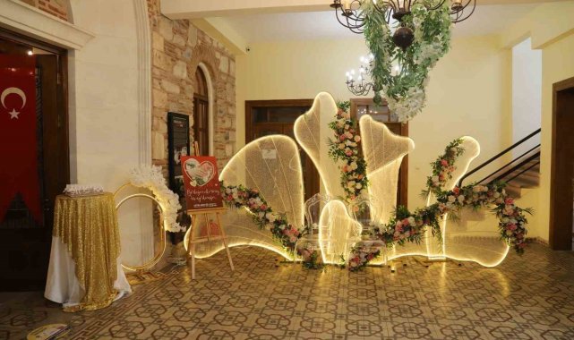 Turgutlu Belediyesi 14 Şubat Sevgililer Günü'nde unutulmayacak bir etkinliğe imza attı. Eski Belediye Binası'ndaki Nikah Salonu, bu özel gün için özenle süslendi. Sevgililer Günü'ne özel yapılan süslemelerle salona giren çiftler, romantik bir atmosferde hayatlarını birleştirmenin heyecanını yaşadı. Nikah Salonu girişinde canlı müzikle karşılanan çiftler ve ailelerine, "Birleşen elleriniz hiç ayrılmasın" yazılı nikah şekerleri ve küçük hediyeler takdim edildi.