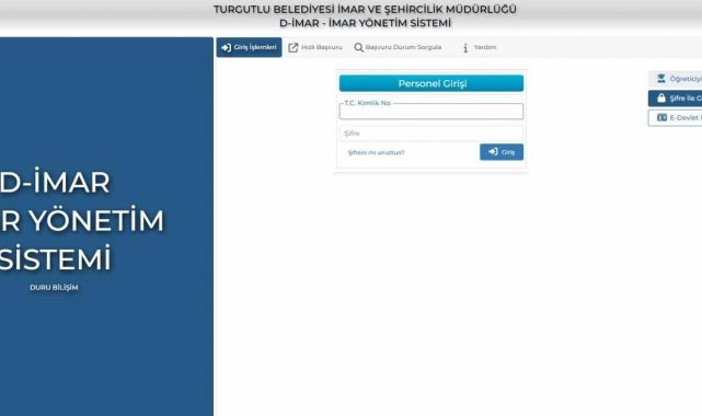 Turgutlu Belediyesi İmar ve Şehircilik Müdürlüğü dijitalleşme ve teknolojik gelişmelerden faydalanarak çalışmalarını daha kaliteli ve hızlı bir şekilde sürdürmek, aynı zamanda zaman ve maliyet tasarrufu sağlamak adına bir yeniliğe imza attı. Bu kapsamda mimari ön onay proje girişleri D-İmar sistemi üzerinden yapılabilecek. Söz konusu sistemde yaşanabilecek aksaklıkların önlenebilmesi adına 4 Ağustos Pazartesi günü başlayan test aşaması ağustos ayı sonuna kadar devam edecek. İmar ve Şehircilik Müdürlüğü, test aşamasında bir aksaklık yaşanmaması durumunda ise 1 Eylül tarihi itibariyle D-İmar sistemine tamamen geçmiş olacak. İmar Yönetim Sistemi'ne https://yapiruhsati.turgutlu.bel.tr:5443/YapiBelgeleriWeb/Kullanici adresi üzerinden ulaşılabilecek.
