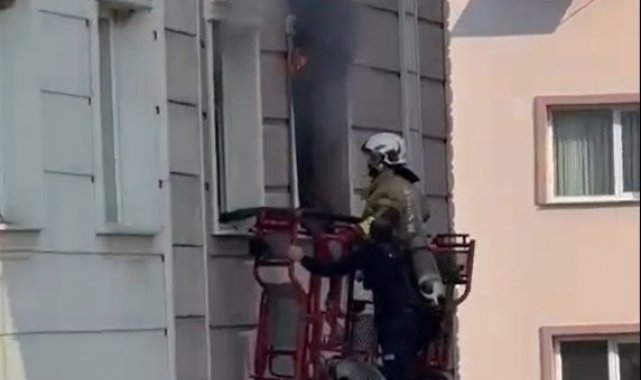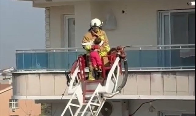 Manisa'nın Turgutlu ilçesinde sabah saatlerinde çıkan yangın paniğe neden olurken evde mahsur kalan çocuklar Manisa Büyükşehir Belediyesi İtfaiye Dairesi Başkanlığı ekipleri tarafından yangın merdiveniyle tahliye edildi.