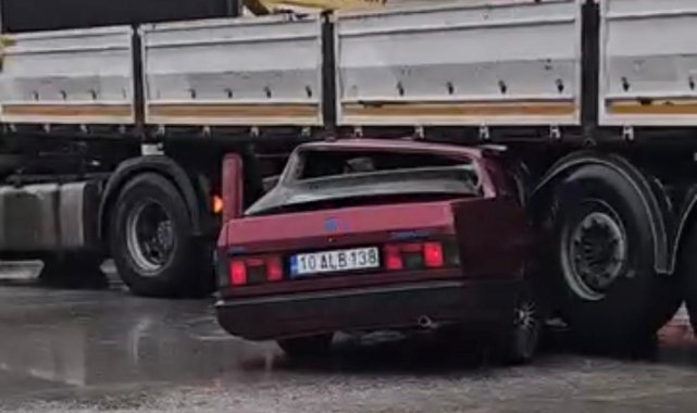Turgutlu'da otomobil tırın altına ok gibi saplandı. O anlar kamerada