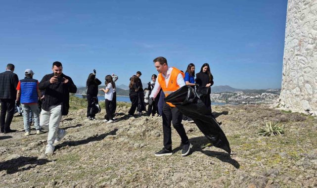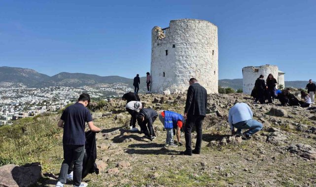 Bodrum'da turizmciler ve lise öğrencileri, Turizm Haftası'nda çevre temizliğine dikkat çekmek amacıyla temizlik yaparak kutladı.