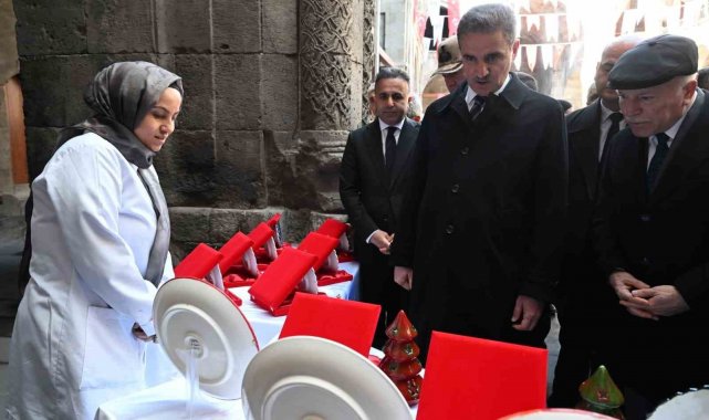 Programın sonunda Vali Aydın Baruş ve protokol üyeleri, Çifte Minareli Medrese içerisinde sergilenen el emeği, göz nuru eserleri inceleyerek yetkililerden bilgi aldı.