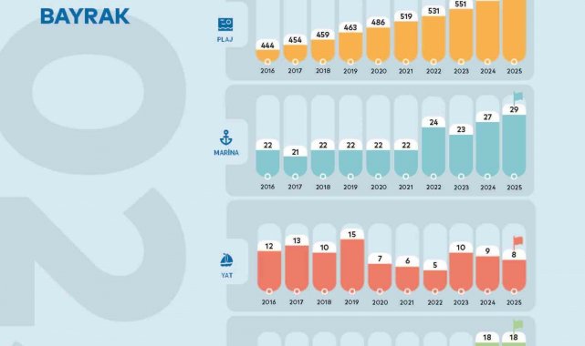 2024'te 567 olan Mavi Bayraklı plaj sayısı, bu yıl 577'ye yükseldi. Marina sayısı 27'den 29'a, bireysel yatlar ise 8'e çıktı. Mavi Bayrak Programı, dünya genelinde 50'den fazla ülkede uygulanıyor. Türkiye'de program, Türkiye Çevre Eğitim Vakfı (TÜRÇEV) koordinasyonunda; Kültür ve Turizm Bakanlığı, Çevre, Şehircilik ve İklim Değişikliği Bakanlığı ve Sağlık Bakanlığı iş birliğiyle yürütülüyor. Plajlarda 33, marinalarda 38, teknelerde 51 ve bireysel yatlarda 4 çevresel ve yönetsel kriterin sağlanması gereken program temiz çevre, güvenli yüzme alanları ve sürdürülebilir turizm anlayışıyla öne çıkıyor.