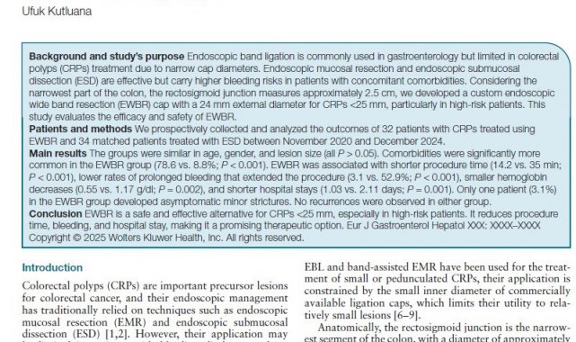 Doç. Dr. Kutluana'nın kendi tasarladığı cihaz eşliğinde geliştirdiği yöntem, gastroenteroloji alanında dünyanın saygın dergilerinden European Journal of Gastroenterology & Hepatology'de orijinal eser olarak yayımlandı.